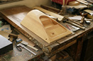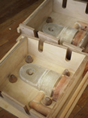 右の写真は鋳造過程における中子型の砂込めを容易にし、鋳造現場の効率化を可能にするために組み立て式にした木型の一例です。