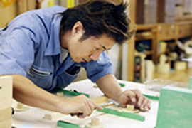 最終的な確認は必ず職人の手によってチェック。先端技術と熟練職人の融合で、信頼の高品質の鋳造用木型をお届けいたします。